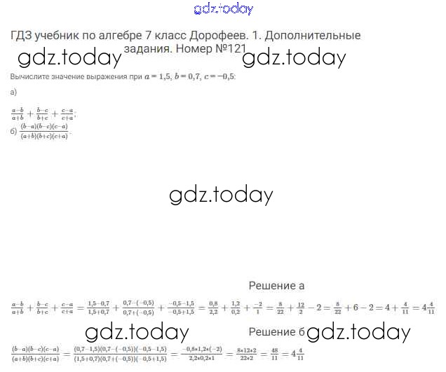 На страницах сайта gdz.today вы найдете учебный и вспомогательный материал, направленный на улучшения знаний школьной программы. ГДЗ - онлайн мир знаний Решение к упражнениям 121 Учебнику по Алгебре для 7 класса Дорофеев, Суворова Просвещение Академический школьный учебник 2020