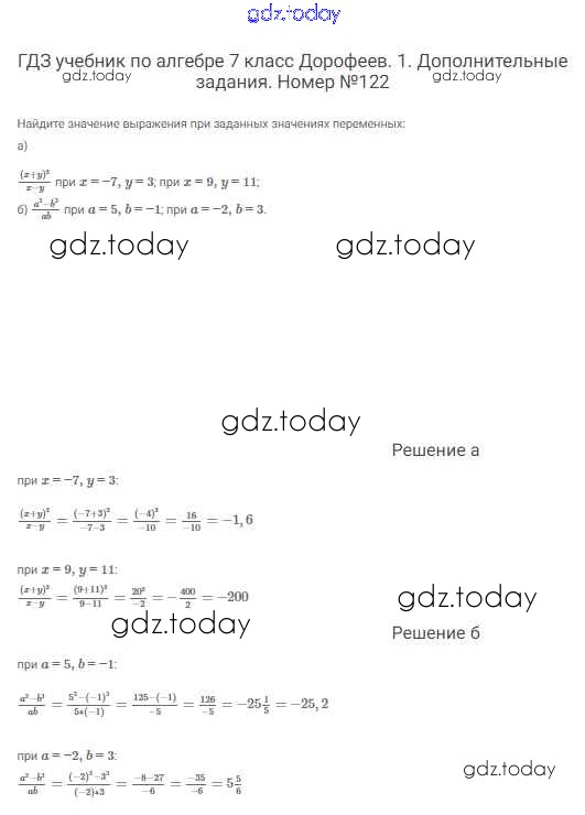 На страницах сайта gdz.today вы найдете учебный и вспомогательный материал, направленный на улучшения знаний школьной программы. ГДЗ - онлайн мир знаний Решение к упражнениям 122 Учебнику по Алгебре для 7 класса Дорофеев, Суворова Просвещение Академический школьный учебник 2020