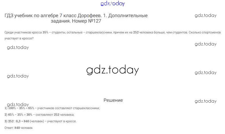 На страницах сайта gdz.today вы найдете учебный и вспомогательный материал, направленный на улучшения знаний школьной программы. ГДЗ - онлайн мир знаний Решение к упражнениям 127 Учебнику по Алгебре для 7 класса Дорофеев, Суворова Просвещение Академический школьный учебник 2020