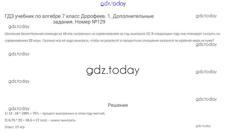 На страницах сайта gdz.today вы найдете учебный и вспомогательный материал, направленный на улучшения знаний школьной программы. ГДЗ - онлайн мир знаний Решение к упражнениям 129 Учебнику по Алгебре для 7 класса Дорофеев, Суворова Просвещение Академический школьный учебник 2020