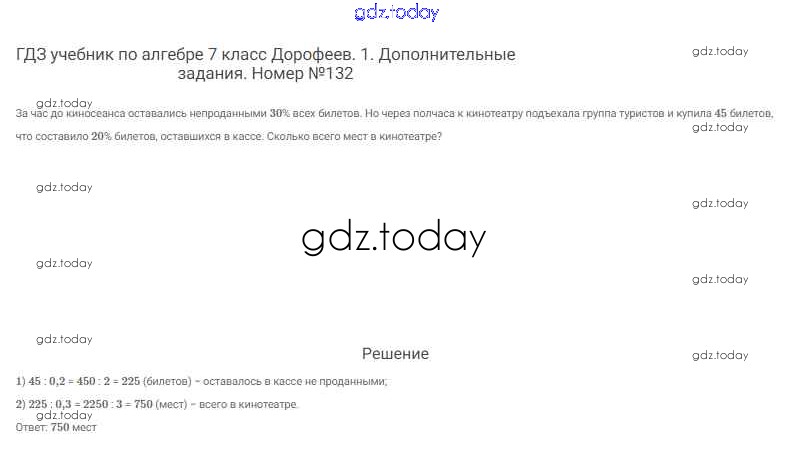 На страницах сайта gdz.today вы найдете учебный и вспомогательный материал, направленный на улучшения знаний школьной программы. ГДЗ - онлайн мир знаний Решение к упражнениям 132 Учебнику по Алгебре для 7 класса Дорофеев, Суворова Просвещение Академический школьный учебник 2020