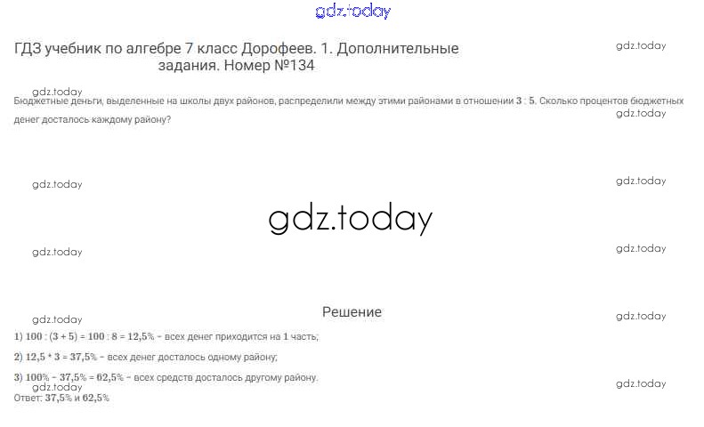 На страницах сайта gdz.today вы найдете учебный и вспомогательный материал, направленный на улучшения знаний школьной программы. ГДЗ - онлайн мир знаний Решение к упражнениям 134 Учебнику по Алгебре для 7 класса Дорофеев, Суворова Просвещение Академический школьный учебник 2020