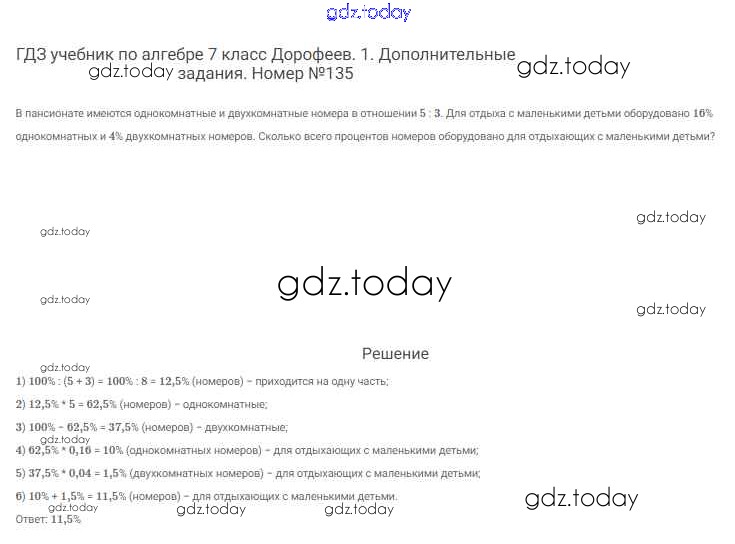 На страницах сайта gdz.today вы найдете учебный и вспомогательный материал, направленный на улучшения знаний школьной программы. ГДЗ - онлайн мир знаний Решение к упражнениям 135 Учебнику по Алгебре для 7 класса Дорофеев, Суворова Просвещение Академический школьный учебник 2020