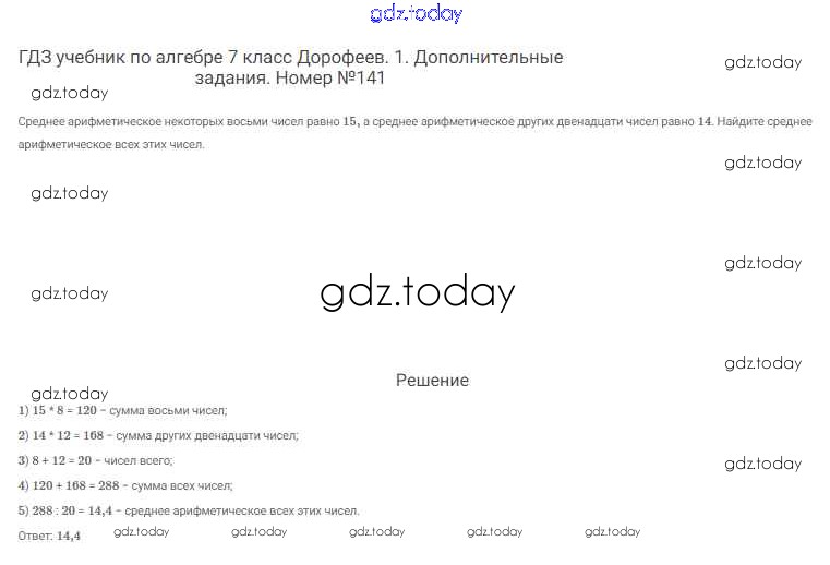 На страницах сайта gdz.today вы найдете учебный и вспомогательный материал, направленный на улучшения знаний школьной программы. ГДЗ - онлайн мир знаний Решение к упражнениям 141 Учебнику по Алгебре для 7 класса Дорофеев, Суворова Просвещение Академический школьный учебник 2020