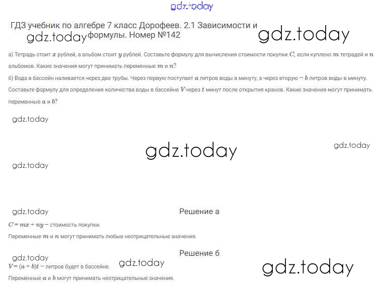На страницах сайта gdz.today вы найдете учебный и вспомогательный материал, направленный на улучшения знаний школьной программы. ГДЗ - онлайн мир знаний Решение к упражнениям 142 Учебнику по Алгебре для 7 класса Дорофеев, Суворова Просвещение Академический школьный учебник 2020