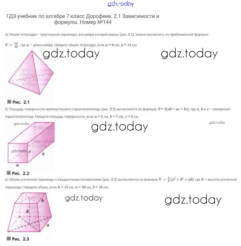 На страницах сайта gdz.today вы найдете учебный и вспомогательный материал, направленный на улучшения знаний школьной программы. ГДЗ - онлайн мир знаний Решение к упражнениям 144 Учебнику по Алгебре для 7 класса Дорофеев, Суворова Просвещение Академический школьный учебник 2020