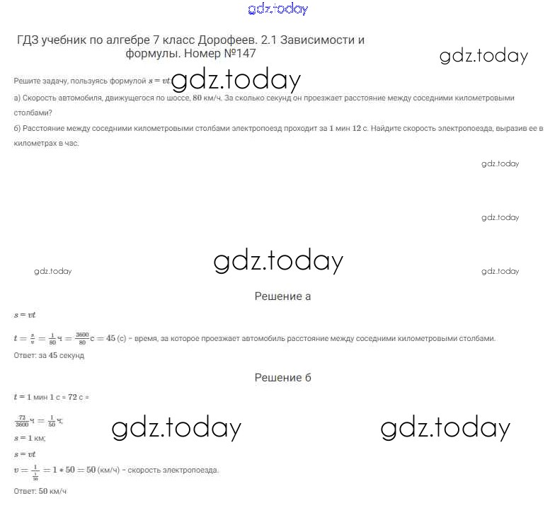 На страницах сайта gdz.today вы найдете учебный и вспомогательный материал, направленный на улучшения знаний школьной программы. ГДЗ - онлайн мир знаний Решение к упражнениям 147 Учебнику по Алгебре для 7 класса Дорофеев, Суворова Просвещение Академический школьный учебник 2020