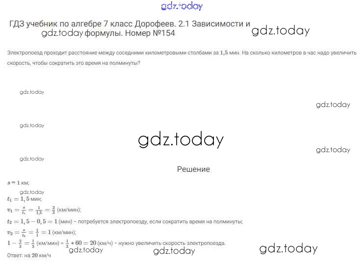 На страницах сайта gdz.today вы найдете учебный и вспомогательный материал, направленный на улучшения знаний школьной программы. ГДЗ - онлайн мир знаний Решение к упражнениям 154 Учебнику по Алгебре для 7 класса Дорофеев, Суворова Просвещение Академический школьный учебник 2020