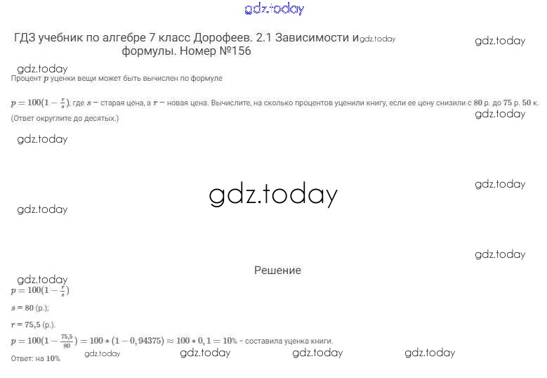 На страницах сайта gdz.today вы найдете учебный и вспомогательный материал, направленный на улучшения знаний школьной программы. ГДЗ - онлайн мир знаний Решение к упражнениям 156 Учебнику по Алгебре для 7 класса Дорофеев, Суворова Просвещение Академический школьный учебник 2020