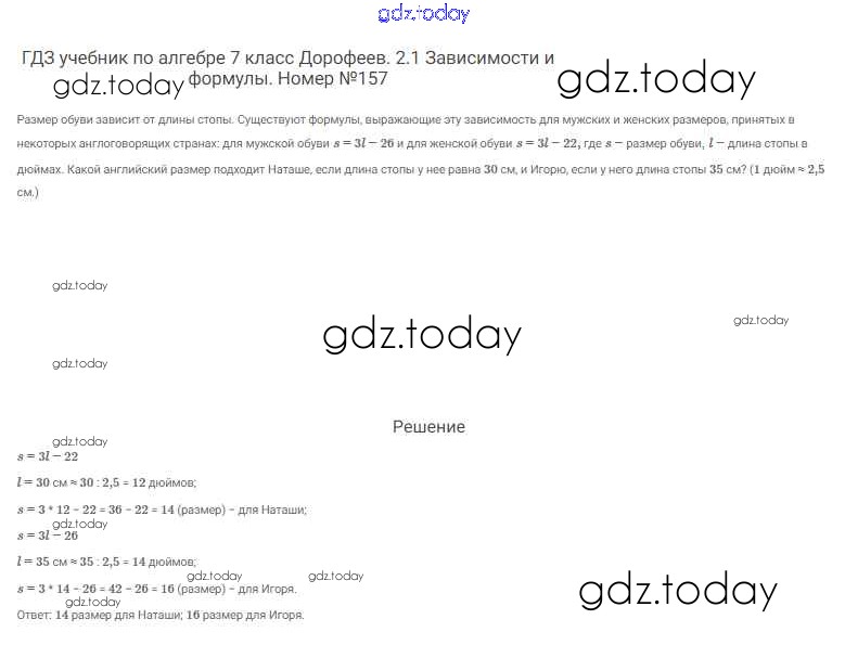 Ответы к Решение к упражнениям 157 Учебнику по Алгебре для 7 класса Дорофеев, Суворова Просвещение Академический школьный учебник 2020