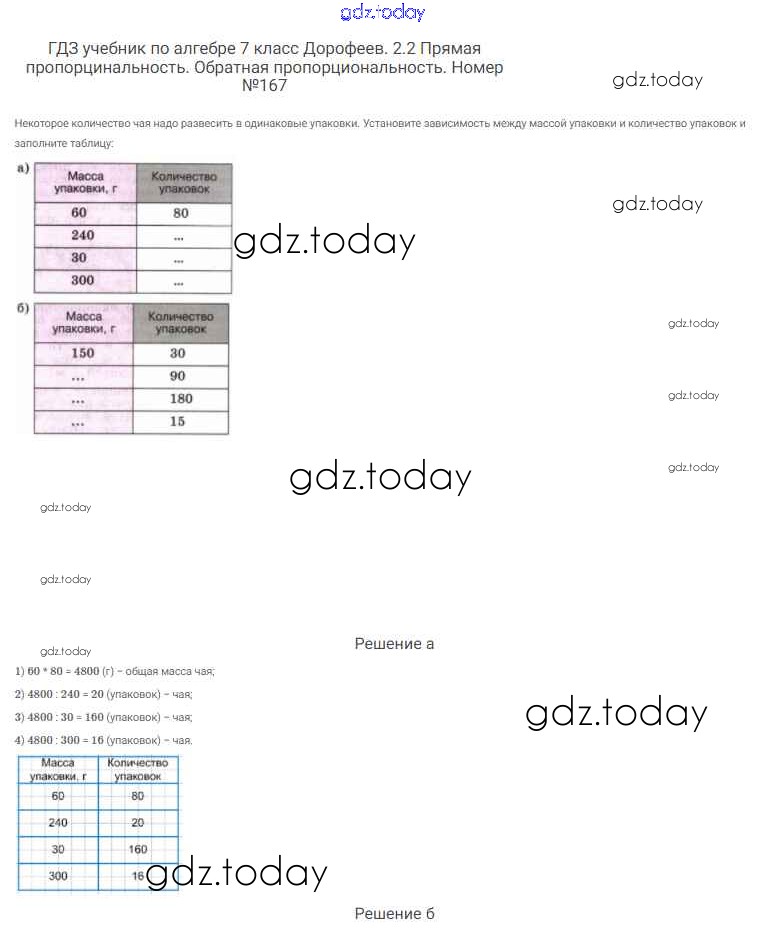 Ответы к Решение к упражнениям 167 Учебнику по Алгебре для 7 класса Дорофеев, Суворова Просвещение Академический школьный учебник 2020