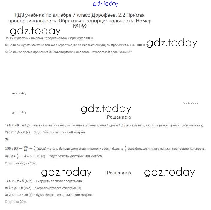 На страницах сайта gdz.today вы найдете учебный и вспомогательный материал, направленный на улучшения знаний школьной программы. ГДЗ - онлайн мир знаний Решение к упражнениям 169 Учебнику по Алгебре для 7 класса Дорофеев, Суворова Просвещение Академический школьный учебник 2020
