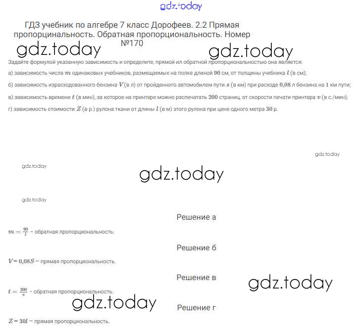 На страницах сайта gdz.today вы найдете учебный и вспомогательный материал, направленный на улучшения знаний школьной программы. ГДЗ - онлайн мир знаний Решение к упражнениям 170 Учебнику по Алгебре для 7 класса Дорофеев, Суворова Просвещение Академический школьный учебник 2020
