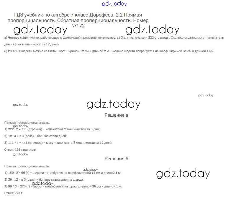 На страницах сайта gdz.today вы найдете учебный и вспомогательный материал, направленный на улучшения знаний школьной программы. ГДЗ - онлайн мир знаний Решение к упражнениям 172 Учебнику по Алгебре для 7 класса Дорофеев, Суворова Просвещение Академический школьный учебник 2020