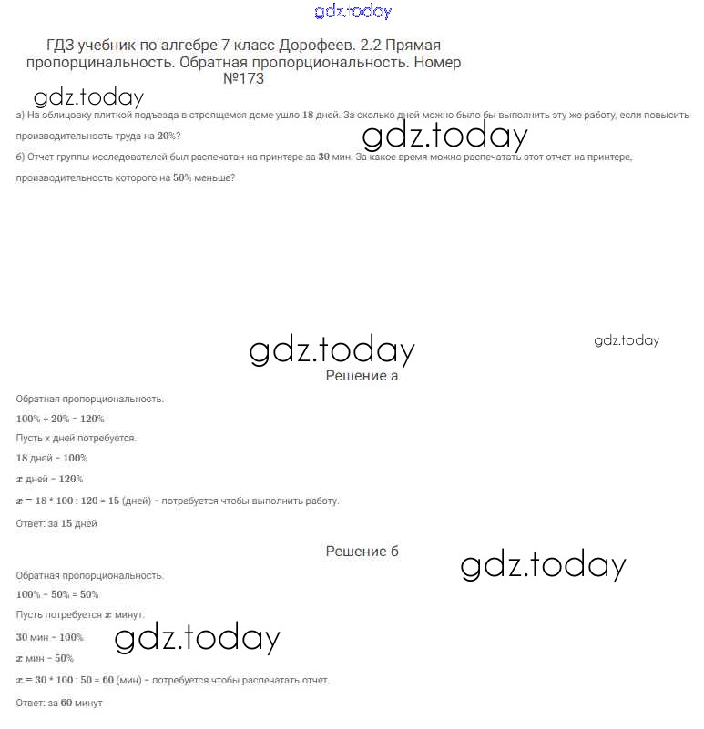 На страницах сайта gdz.today вы найдете учебный и вспомогательный материал, направленный на улучшения знаний школьной программы. ГДЗ - онлайн мир знаний Решение к упражнениям 173 Учебнику по Алгебре для 7 класса Дорофеев, Суворова Просвещение Академический школьный учебник 2020