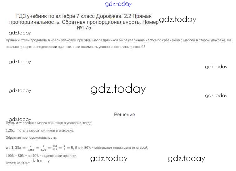 Ответы к Решение к упражнениям 175 Учебнику по Алгебре для 7 класса Дорофеев, Суворова Просвещение Академический школьный учебник 2020