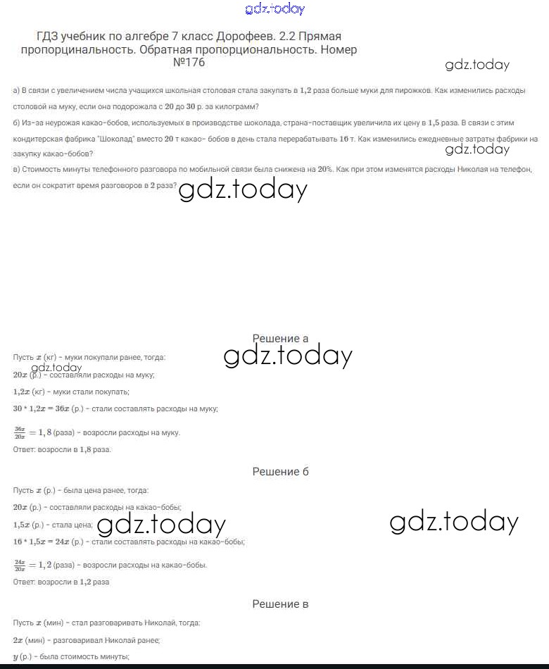 На страницах сайта gdz.today вы найдете учебный и вспомогательный материал, направленный на улучшения знаний школьной программы. ГДЗ - онлайн мир знаний Решение к упражнениям 176 Учебнику по Алгебре для 7 класса Дорофеев, Суворова Просвещение Академический школьный учебник 2020