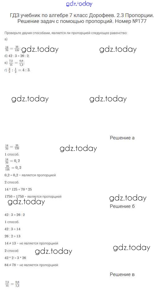 На страницах сайта gdz.today вы найдете учебный и вспомогательный материал, направленный на улучшения знаний школьной программы. ГДЗ - онлайн мир знаний Решение к упражнениям 177 Учебнику по Алгебре для 7 класса Дорофеев, Суворова Просвещение Академический школьный учебник 2020