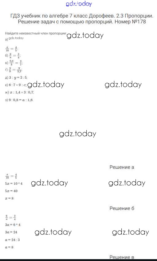 На страницах сайта gdz.today вы найдете учебный и вспомогательный материал, направленный на улучшения знаний школьной программы. ГДЗ - онлайн мир знаний Решение к упражнениям 178 Учебнику по Алгебре для 7 класса Дорофеев, Суворова Просвещение Академический школьный учебник 2020