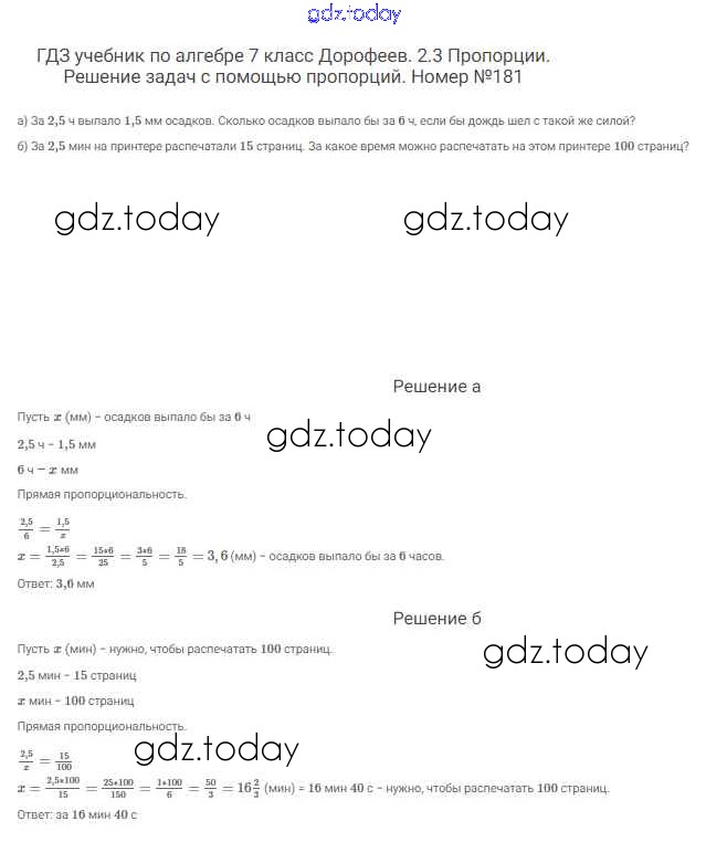 Ответы к Решение к упражнениям 181 Учебнику по Алгебре для 7 класса Дорофеев, Суворова Просвещение Академический школьный учебник 2020