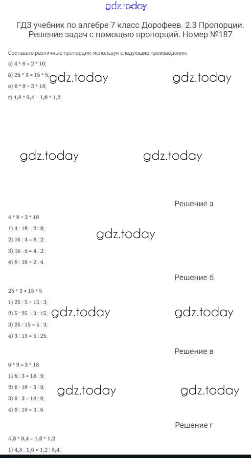 На страницах сайта gdz.today вы найдете учебный и вспомогательный материал, направленный на улучшения знаний школьной программы. ГДЗ - онлайн мир знаний Решение к упражнениям 187 Учебнику по Алгебре для 7 класса Дорофеев, Суворова Просвещение Академический школьный учебник 2020