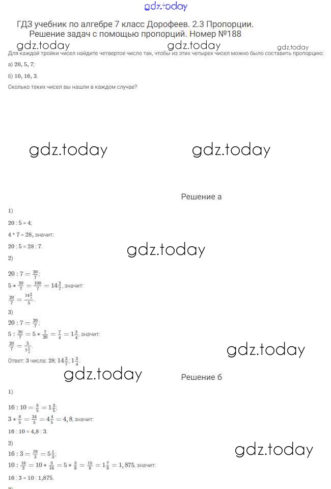 На страницах сайта gdz.today вы найдете учебный и вспомогательный материал, направленный на улучшения знаний школьной программы. ГДЗ - онлайн мир знаний Решение к упражнениям 188 Учебнику по Алгебре для 7 класса Дорофеев, Суворова Просвещение Академический школьный учебник 2020