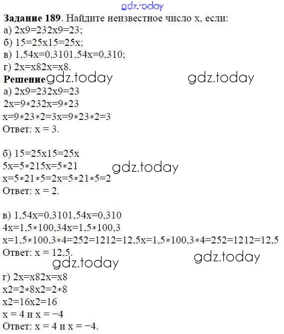 Ответы к Решение к упражнениям 189 Учебнику по Алгебре для 7 класса Дорофеев, Суворова Просвещение Академический школьный учебник 2020