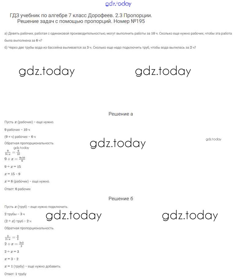 На страницах сайта gdz.today вы найдете учебный и вспомогательный материал, направленный на улучшения знаний школьной программы. ГДЗ - онлайн мир знаний Решение к упражнениям 195 Учебнику по Алгебре для 7 класса Дорофеев, Суворова Просвещение Академический школьный учебник 2020