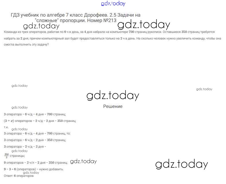 На страницах сайта gdz.today вы найдете учебный и вспомогательный материал, направленный на улучшения знаний школьной программы. ГДЗ - онлайн мир знаний Решение к упражнениям 213 Учебнику по Алгебре для 7 класса Дорофеев, Суворова Просвещение Академический школьный учебник 2020