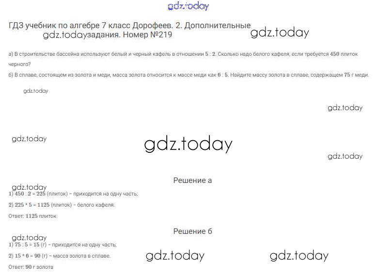 На страницах сайта gdz.today вы найдете учебный и вспомогательный материал, направленный на улучшения знаний школьной программы. ГДЗ - онлайн мир знаний Решение к упражнениям 219 Учебнику по Алгебре для 7 класса Дорофеев, Суворова Просвещение Академический школьный учебник 2020