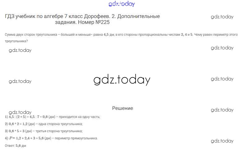 На страницах сайта gdz.today вы найдете учебный и вспомогательный материал, направленный на улучшения знаний школьной программы. ГДЗ - онлайн мир знаний Решение к упражнениям 225 Учебнику по Алгебре для 7 класса Дорофеев, Суворова Просвещение Академический школьный учебник 2020