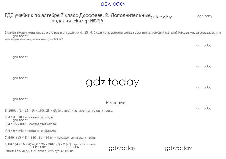 На страницах сайта gdz.today вы найдете учебный и вспомогательный материал, направленный на улучшения знаний школьной программы. ГДЗ - онлайн мир знаний Решение к упражнениям 226 Учебнику по Алгебре для 7 класса Дорофеев, Суворова Просвещение Академический школьный учебник 2020