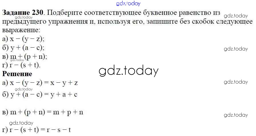На страницах сайта gdz.today вы найдете учебный и вспомогательный материал, направленный на улучшения знаний школьной программы. ГДЗ - онлайн мир знаний Решение к упражнениям 230 Учебнику по Алгебре для 7 класса Дорофеев, Суворова Просвещение Академический школьный учебник 2020