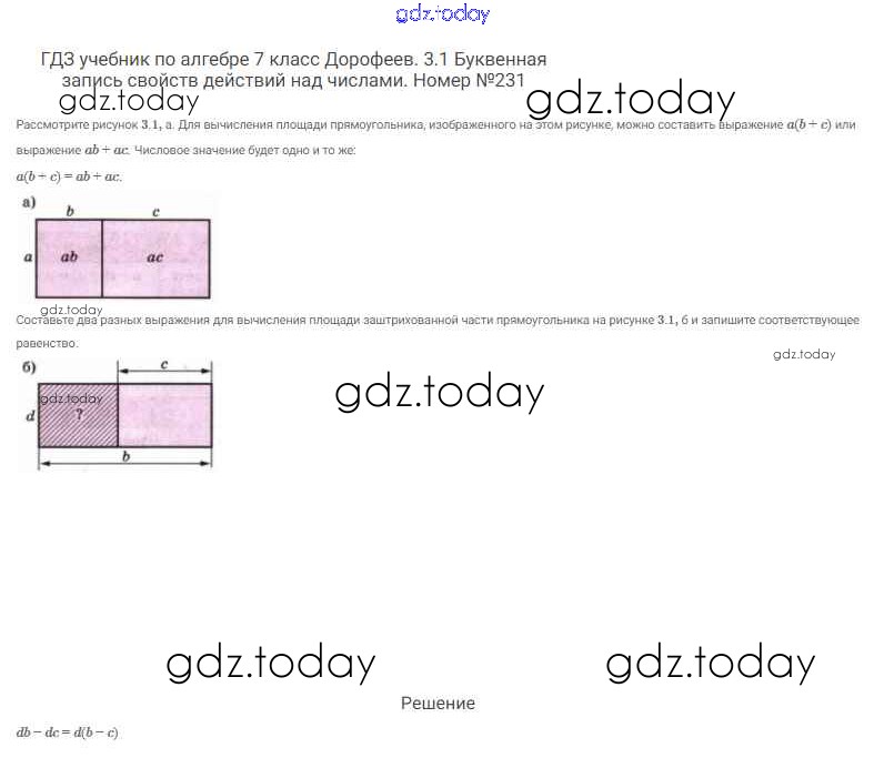 На страницах сайта gdz.today вы найдете учебный и вспомогательный материал, направленный на улучшения знаний школьной программы. ГДЗ - онлайн мир знаний Решение к упражнениям 231 Учебнику по Алгебре для 7 класса Дорофеев, Суворова Просвещение Академический школьный учебник 2020