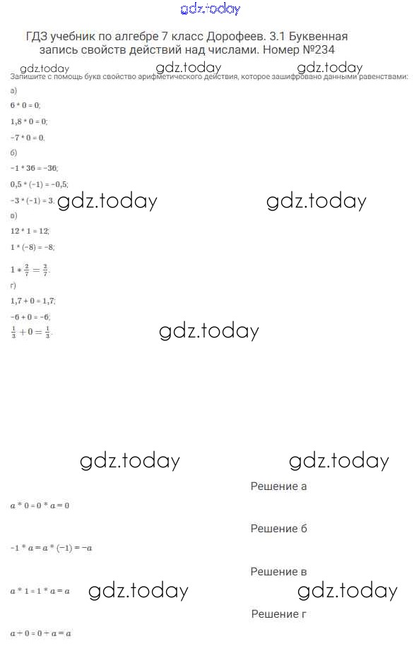 На страницах сайта gdz.today вы найдете учебный и вспомогательный материал, направленный на улучшения знаний школьной программы. ГДЗ - онлайн мир знаний Решение к упражнениям 234 Учебнику по Алгебре для 7 класса Дорофеев, Суворова Просвещение Академический школьный учебник 2020