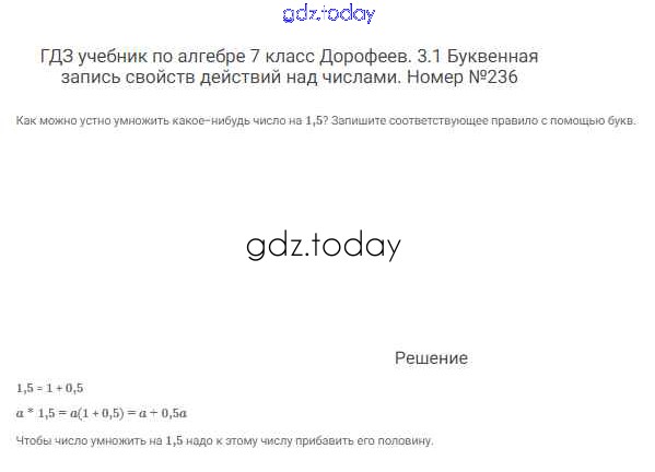 На страницах сайта gdz.today вы найдете учебный и вспомогательный материал, направленный на улучшения знаний школьной программы. ГДЗ - онлайн мир знаний Решение к упражнениям 236 Учебнику по Алгебре для 7 класса Дорофеев, Суворова Просвещение Академический школьный учебник 2020