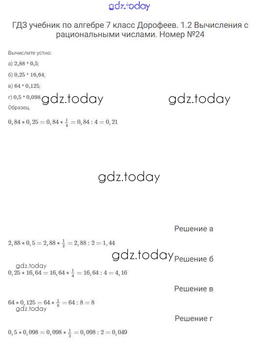 На страницах сайта gdz.today вы найдете учебный и вспомогательный материал, направленный на улучшения знаний школьной программы. ГДЗ - онлайн мир знаний Решение к упражнениям 24 Учебнику по Алгебре для 7 класса Дорофеев, Суворова Просвещение Академический школьный учебник 2020
