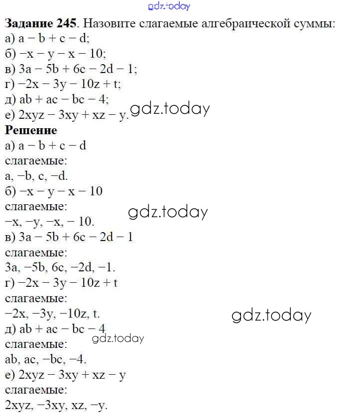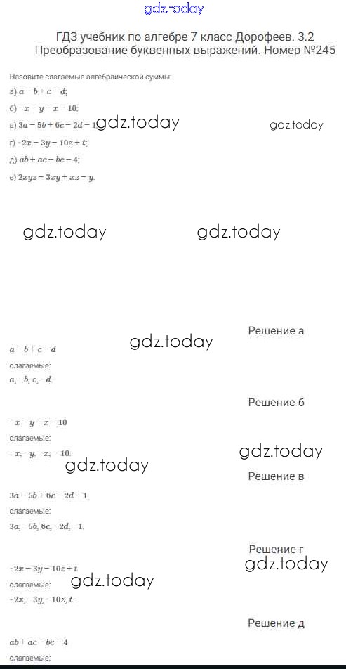 На страницах сайта gdz.today вы найдете учебный и вспомогательный материал, направленный на улучшения знаний школьной программы. ГДЗ - онлайн мир знаний Решение к упражнениям 245 Учебнику по Алгебре для 7 класса Дорофеев, Суворова Просвещение Академический школьный учебник 2020