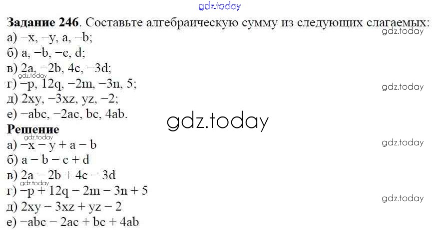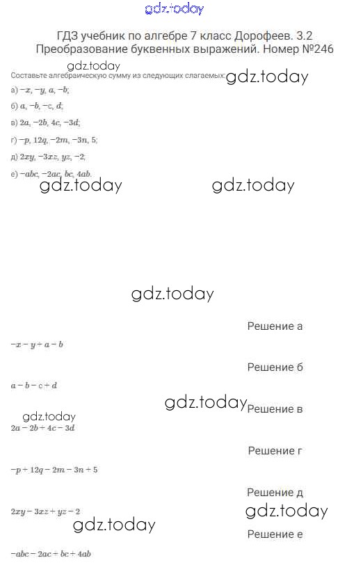 На страницах сайта gdz.today вы найдете учебный и вспомогательный материал, направленный на улучшения знаний школьной программы. ГДЗ - онлайн мир знаний Решение к упражнениям 246 Учебнику по Алгебре для 7 класса Дорофеев, Суворова Просвещение Академический школьный учебник 2020