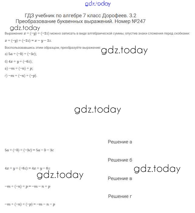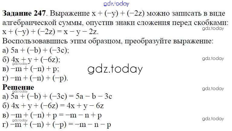 На страницах сайта gdz.today вы найдете учебный и вспомогательный материал, направленный на улучшения знаний школьной программы. ГДЗ - онлайн мир знаний Решение к упражнениям 247 Учебнику по Алгебре для 7 класса Дорофеев, Суворова Просвещение Академический школьный учебник 2020