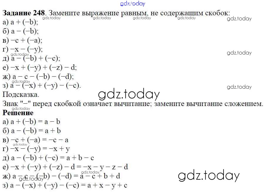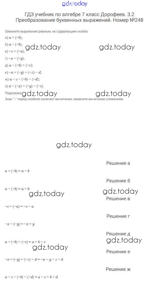 На страницах сайта gdz.today вы найдете учебный и вспомогательный материал, направленный на улучшения знаний школьной программы. ГДЗ - онлайн мир знаний Решение к упражнениям 248 Учебнику по Алгебре для 7 класса Дорофеев, Суворова Просвещение Академический школьный учебник 2020
