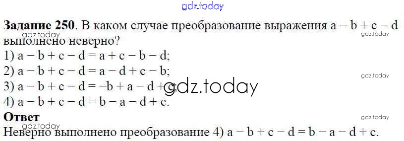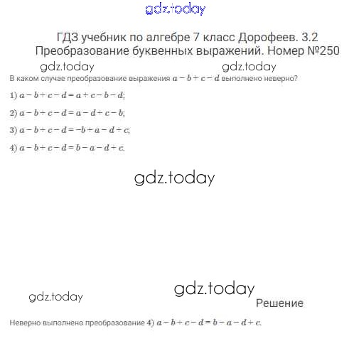 На страницах сайта gdz.today вы найдете учебный и вспомогательный материал, направленный на улучшения знаний школьной программы. ГДЗ - онлайн мир знаний Решение к упражнениям 250 Учебнику по Алгебре для 7 класса Дорофеев, Суворова Просвещение Академический школьный учебник 2020