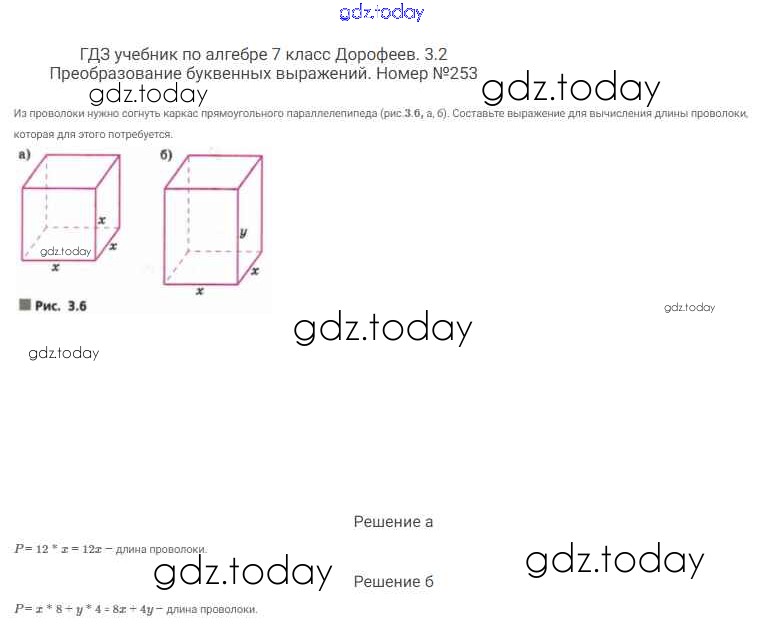 Ответы к Решение к упражнениям 253 Учебнику по Алгебре для 7 класса Дорофеев, Суворова Просвещение Академический школьный учебник 2020