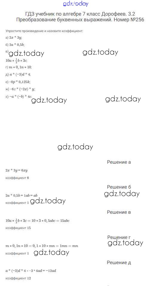 На страницах сайта gdz.today вы найдете учебный и вспомогательный материал, направленный на улучшения знаний школьной программы. ГДЗ - онлайн мир знаний Решение к упражнениям 256 Учебнику по Алгебре для 7 класса Дорофеев, Суворова Просвещение Академический школьный учебник 2020