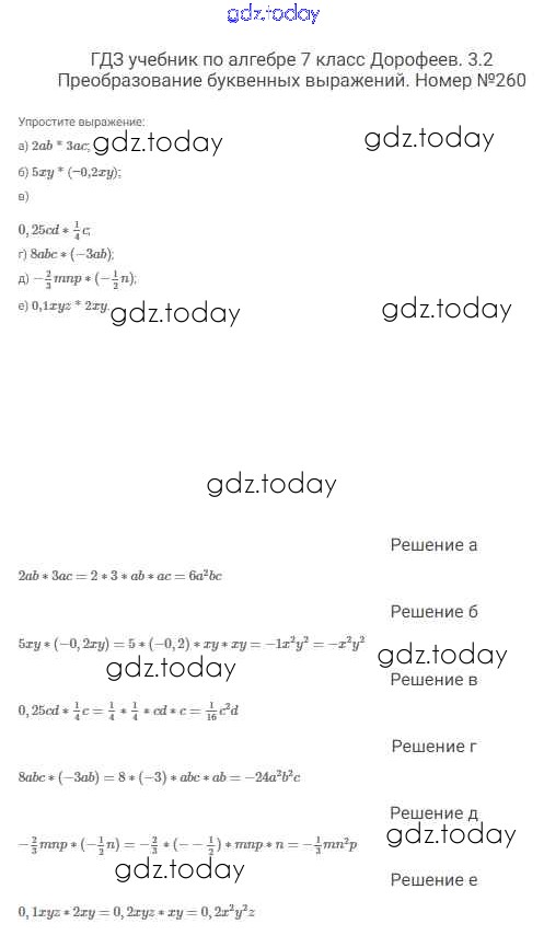 На страницах сайта gdz.today вы найдете учебный и вспомогательный материал, направленный на улучшения знаний школьной программы. ГДЗ - онлайн мир знаний Решение к упражнениям 260 Учебнику по Алгебре для 7 класса Дорофеев, Суворова Просвещение Академический школьный учебник 2020