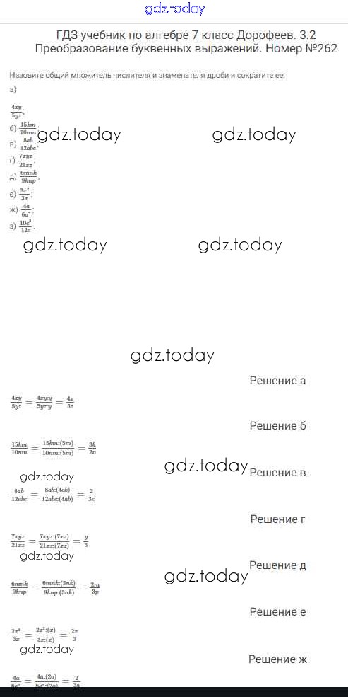 На страницах сайта gdz.today вы найдете учебный и вспомогательный материал, направленный на улучшения знаний школьной программы. ГДЗ - онлайн мир знаний Решение к упражнениям 262 Учебнику по Алгебре для 7 класса Дорофеев, Суворова Просвещение Академический школьный учебник 2020