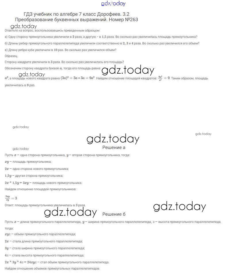 Ответы к Решение к упражнениям 263 Учебнику по Алгебре для 7 класса Дорофеев, Суворова Просвещение Академический школьный учебник 2020