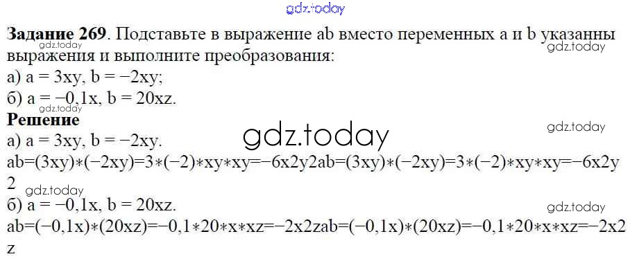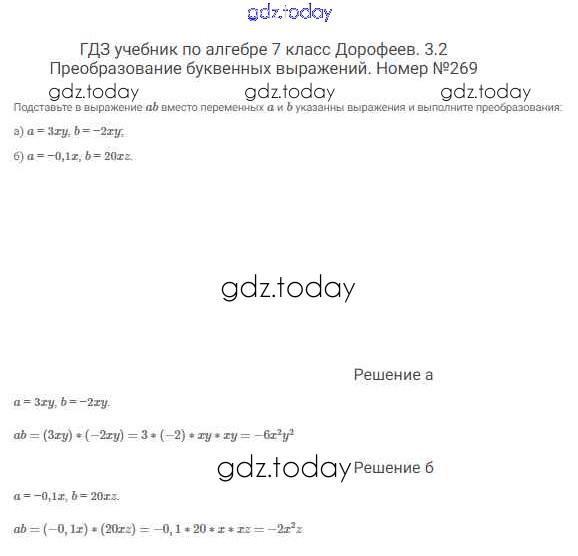На страницах сайта gdz.today вы найдете учебный и вспомогательный материал, направленный на улучшения знаний школьной программы. ГДЗ - онлайн мир знаний Решение к упражнениям 269 Учебнику по Алгебре для 7 класса Дорофеев, Суворова Просвещение Академический школьный учебник 2020