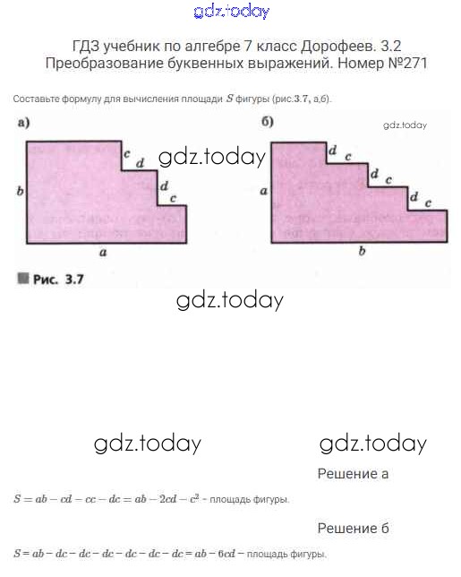 Ответы к Решение к упражнениям 271 Учебнику по Алгебре для 7 класса Дорофеев, Суворова Просвещение Академический школьный учебник 2020