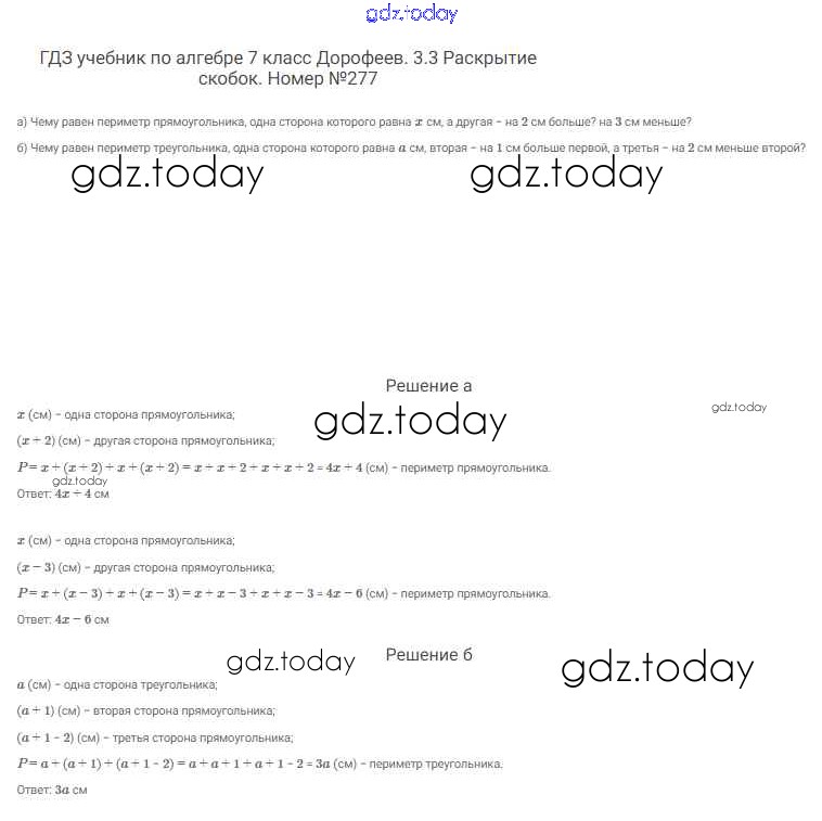На страницах сайта gdz.today вы найдете учебный и вспомогательный материал, направленный на улучшения знаний школьной программы. ГДЗ - онлайн мир знаний Решение к упражнениям 277 Учебнику по Алгебре для 7 класса Дорофеев, Суворова Просвещение Академический школьный учебник 2020